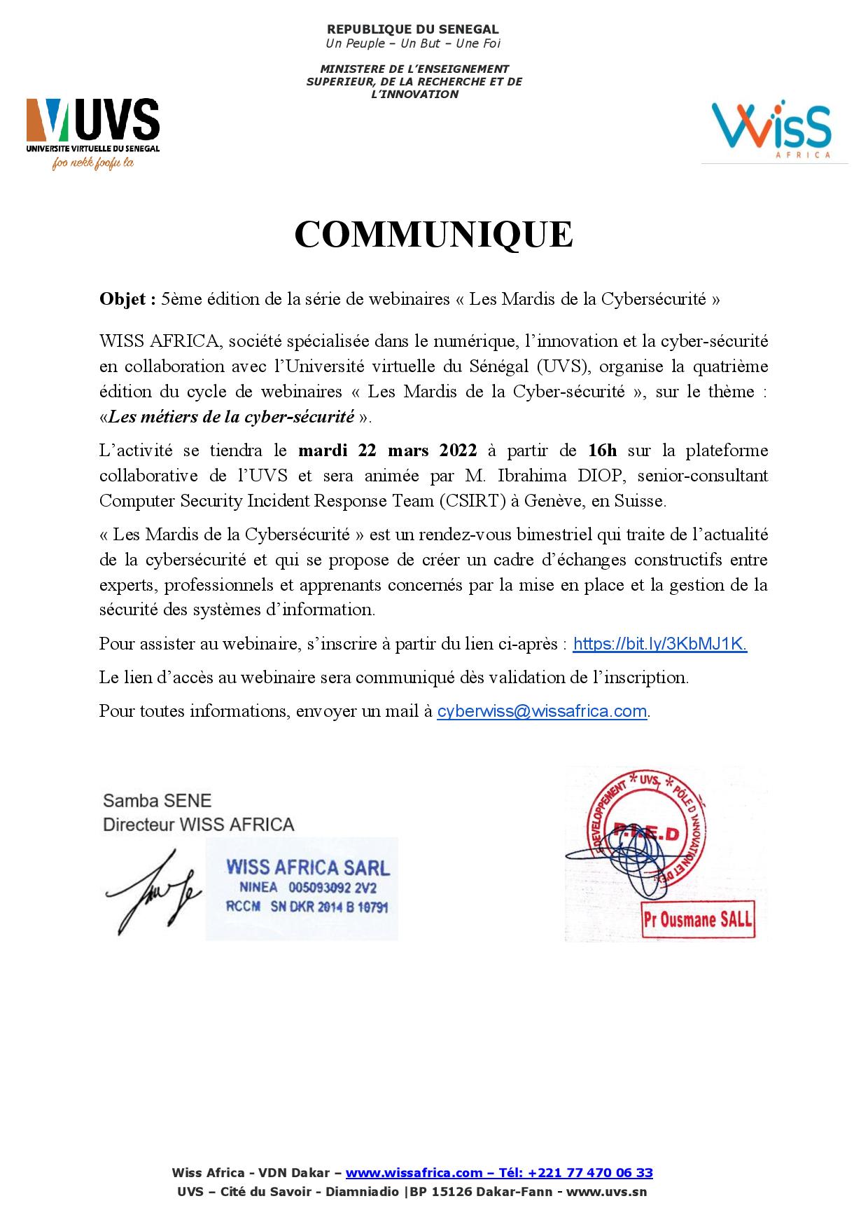 Accueil > Cérémonie > 5ème édition de la série de webinaires « Les Mardis de la Cybersécurité »