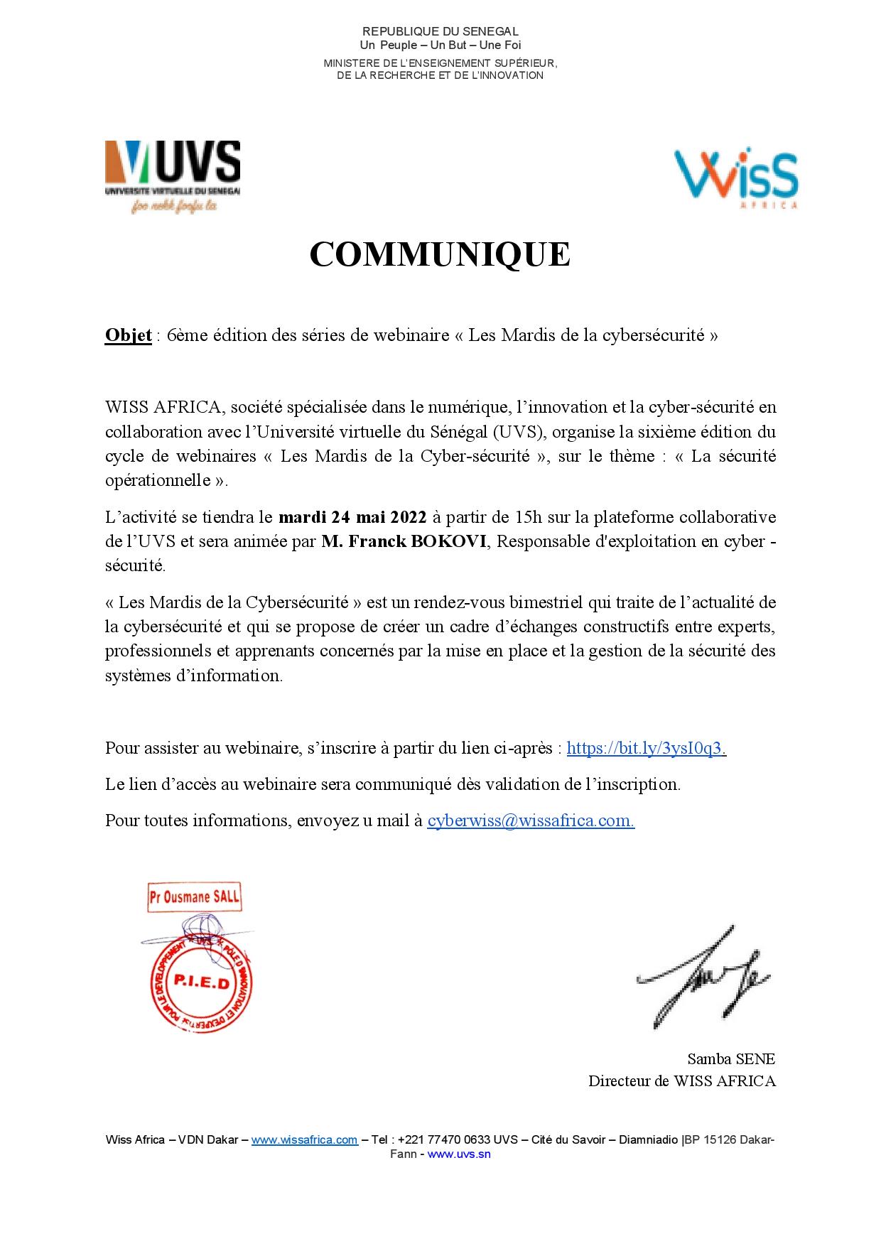 Accueil > communiqué > 6ème édition des séries de webinaire « Les Mardis de la cybersécurité »