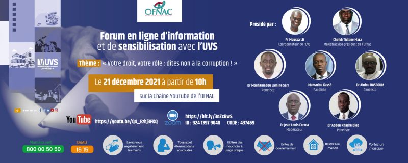 Dans le cadre de la quinzaine nationale de lutte contre la corruption, l’Université numérique Cheikh Hamidou KANE (UN-CHK) en collaboration avec l’Office national de Lutte contre la Fraude et la Corruption (OFNAC), a organisé un forum en ligne d’information et de sensibilisation sur la corruption, le mardi 21 décembre 2021, sur le thème « Votre […]