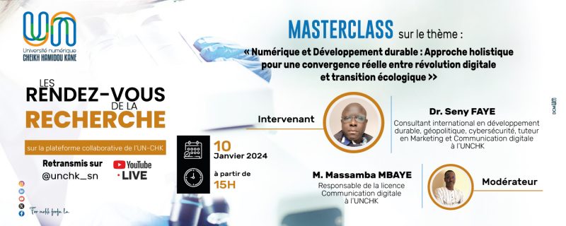 La première session de l’année 2024 des « Rendez-vous de la Recherche », organisée par le Pôle d’innovation et d’Expertise pour le Développement (PIED) en collaboration avec le Pôle Sciences Technologies et Numérique (STN), tenue le 10 janvier dernier a été consacrée à une Masterclass sur le thème « Numérique et Développement durable : approche holistique pour une […]