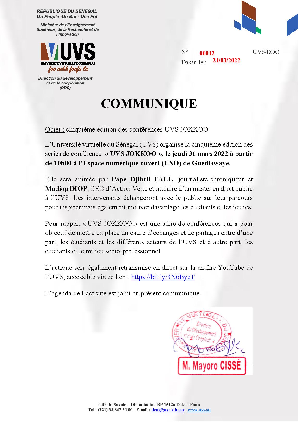 Accueil > communiqué > cinquième édition des conférences UVS JOKKOO