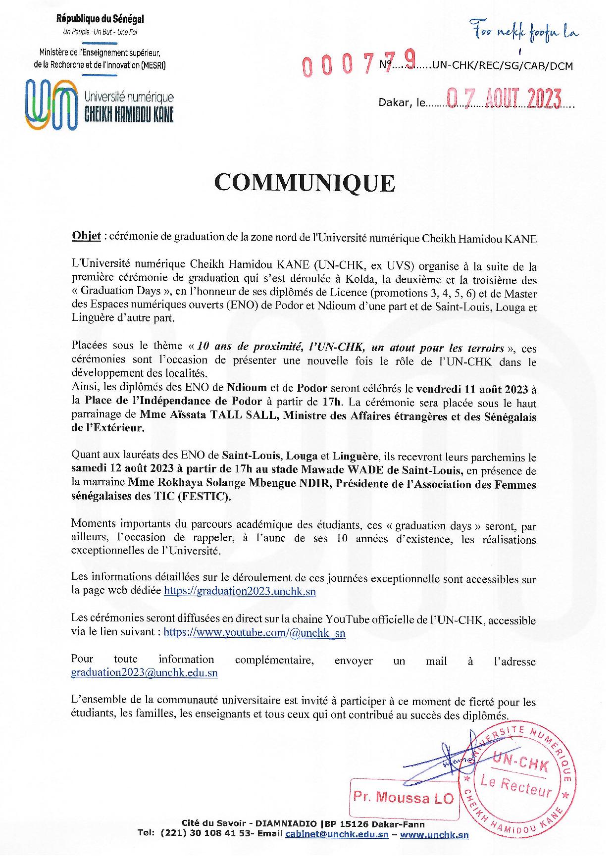 Accueil > communiqué > Communiqué – Cérémonie de graduation de la Zone Nord
