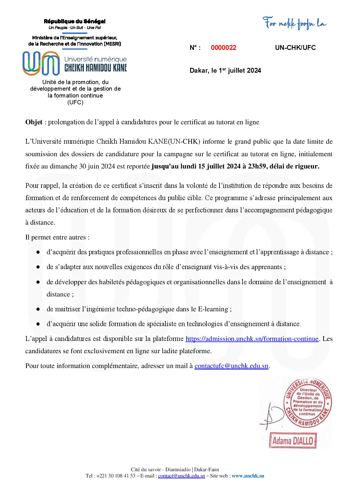 Accueil > communiqué > Prolongation AAC UFC certificat au tutorat