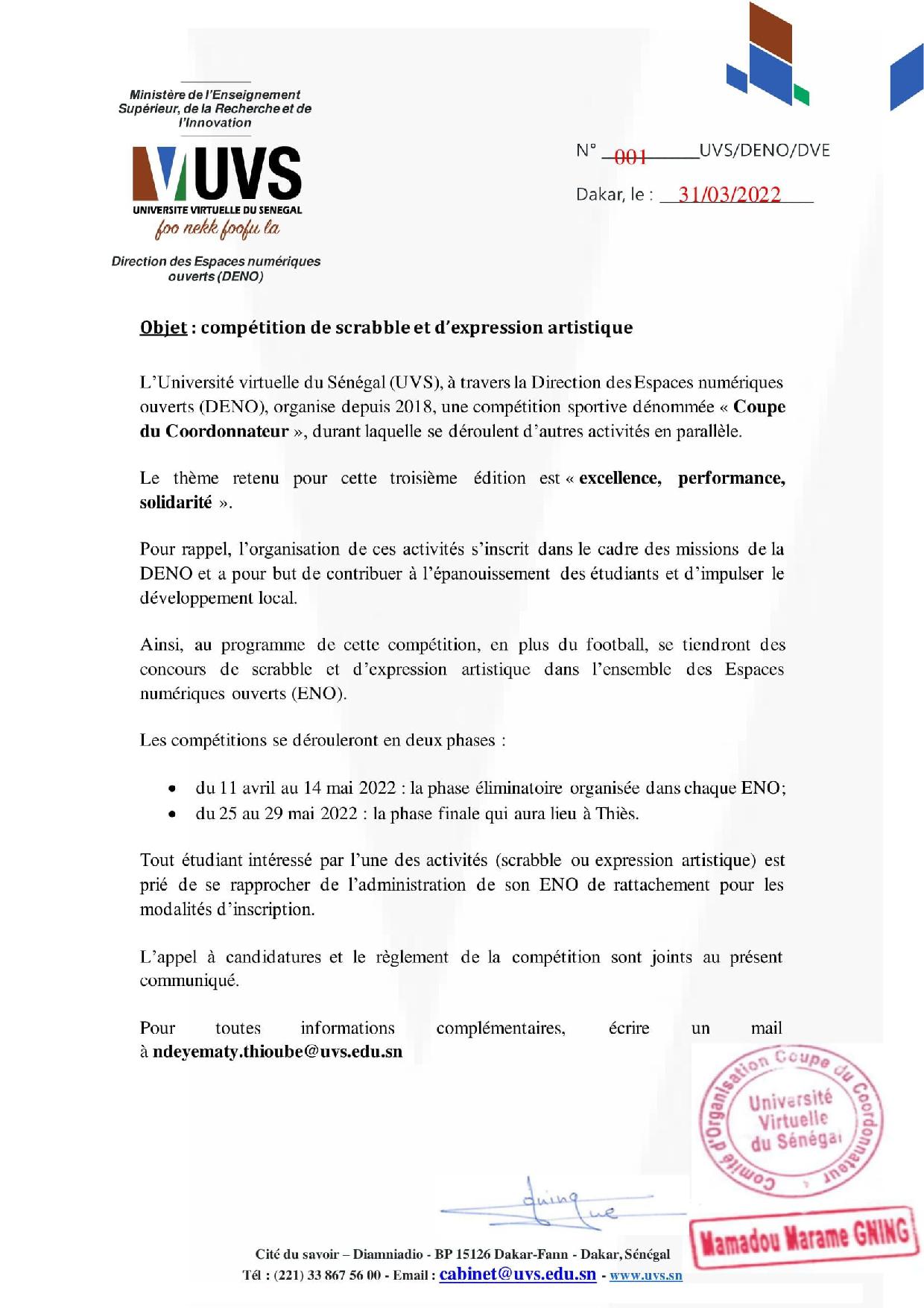 Recteur, UN-CHK Professeur titulaire en Informatique, Moussa LO est depuis novembre 2016 le Recteur de l’Université numérique Cheikh Hamidou KANE (ex- Université virtuelle du Sénégal) (www.uvs.sn). Il a, auparavant, occupé plusieurs fonctions de responsabilité à l’Université Gaston Berger de Saint-Louis (www.ugb.sn) : Vice-président de l’Assemblée de l’Université, Directeur de l’UFR de Sciences Appliquées et de Technologie. Entre 2014 et 2016, il a dirigé le Centre d’Excellence Africain en Mathématiques, Informatique et TIC (www.ceamitic.sn). De 2015 à 2018, il a codirigé le Laboratoire International de Recherche en Informatique et en Mathématiques Appliquées (lirima.inria.fr). Il a dirigé plusieurs thèses de doctorat d’informatique et est auteur de plusieurs publications scientifiques, principalement dans les domaines du web, du web sémantique et de l’ingénierie de la connaissance. Le Professeur LO est également membre fondateur et premier Président (2013-2015) de l’Association Sénégalaise des Chercheurs en Informatique (ASCII, ascii.org.sn/) Il est depuis 2021, membre titulaire de l’Académie Nationale des Sciences et Techniques du Sénégal (ansts.assistic.net) et Président du Conseil scientifique et académique du Campus franco-sénégalais (cfs.edu.sn). Il est Chevalier dans l’ordre international des Palmes académiques du CAMES (www.lecames.org/programmes/oipa ).Pr Moussa LO,