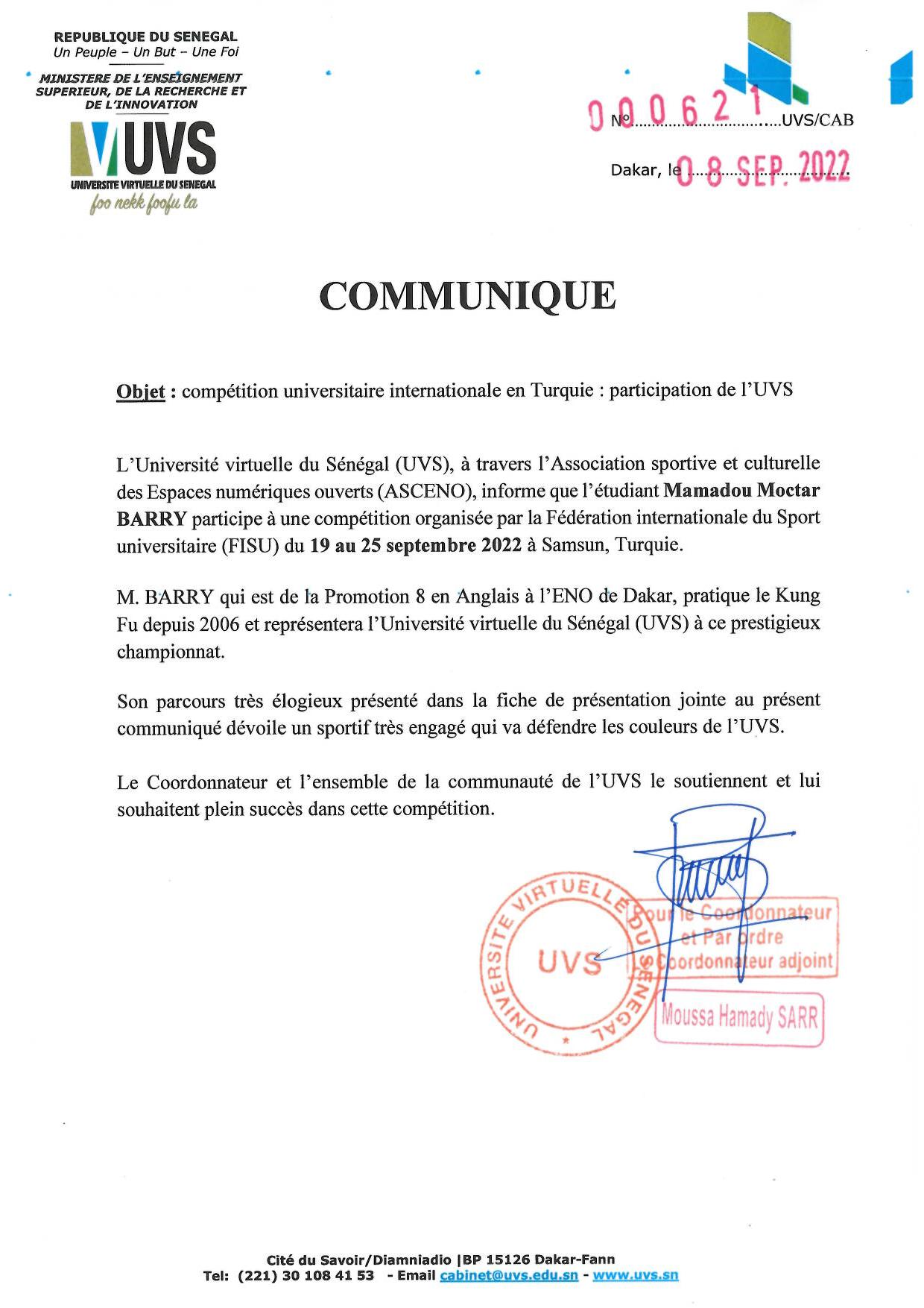 Accueil > communiqué > compétition universitaire internationale en Turquie : participation de l’UVS