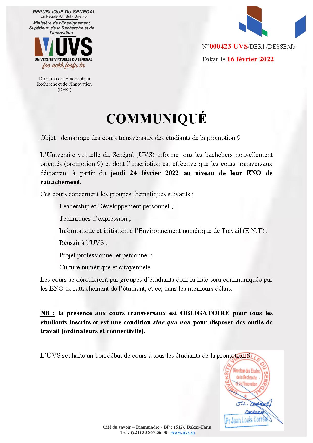 Démarrage des cours transversaux des étudiants de la promotion 9