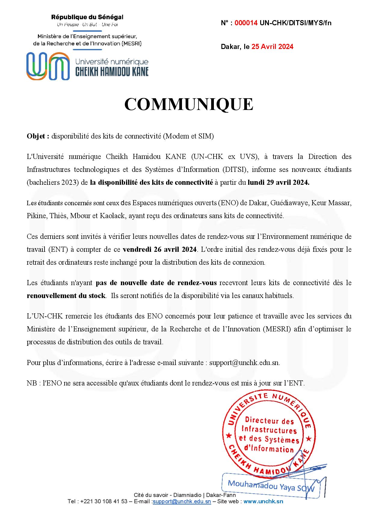 Accueil > communiqué > Disponibilité des kits de connectivité (Modem et SIM)