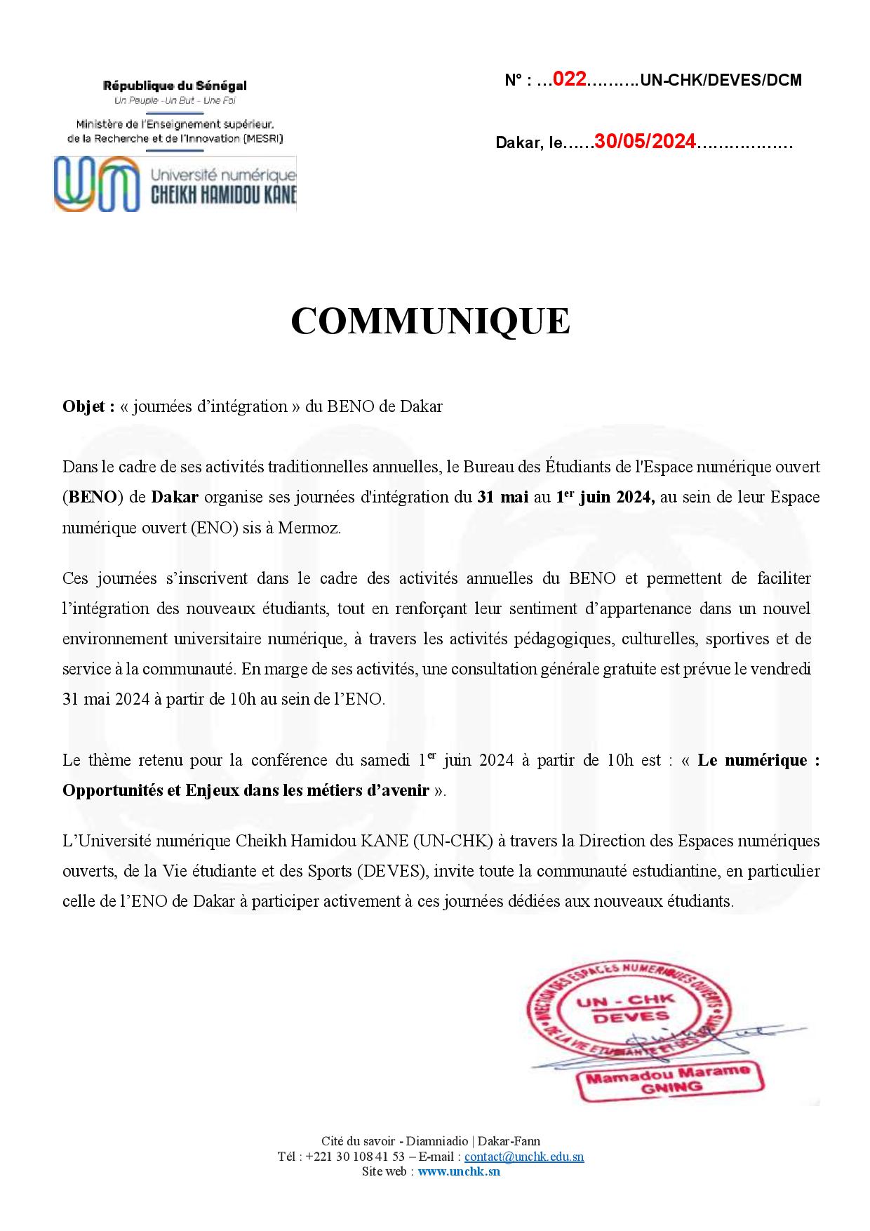 Recteur, UN-CHK Professeur titulaire en Informatique, Moussa LO est depuis novembre 2016 le Recteur de l’Université numérique Cheikh Hamidou KANE (ex- Université virtuelle du Sénégal) (www.uvs.sn). Il a, auparavant, occupé plusieurs fonctions de responsabilité à l’Université Gaston Berger de Saint-Louis (www.ugb.sn) : Vice-président de l’Assemblée de l’Université, Directeur de l’UFR de Sciences Appliquées et de Technologie. Entre 2014 et 2016, il a dirigé le Centre d’Excellence Africain en Mathématiques, Informatique et TIC (www.ceamitic.sn). De 2015 à 2018, il a codirigé le Laboratoire International de Recherche en Informatique et en Mathématiques Appliquées (lirima.inria.fr). Il a dirigé plusieurs thèses de doctorat d’informatique et est auteur de plusieurs publications scientifiques, principalement dans les domaines du web, du web sémantique et de l’ingénierie de la connaissance. Le Professeur LO est également membre fondateur et premier Président (2013-2015) de l’Association Sénégalaise des Chercheurs en Informatique (ASCII, ascii.org.sn/) Il est depuis 2021, membre titulaire de l’Académie Nationale des Sciences et Techniques du Sénégal (ansts.assistic.net) et Président du Conseil scientifique et académique du Campus franco-sénégalais (cfs.edu.sn). Il est Chevalier dans l’ordre international des Palmes académiques du CAMES (www.lecames.org/programmes/oipa ).Pr Moussa LO,