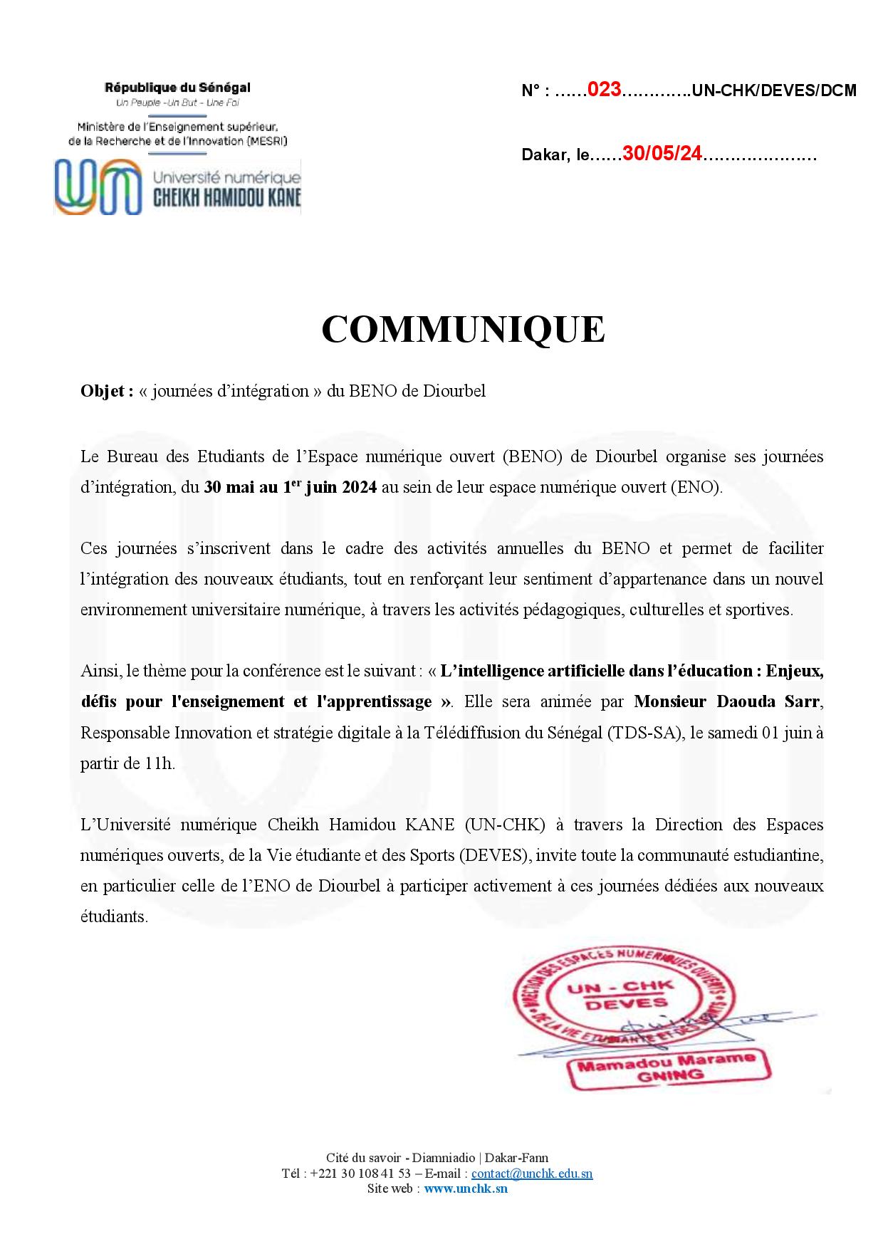 « journées d’intégration » du BENO de Diourbel