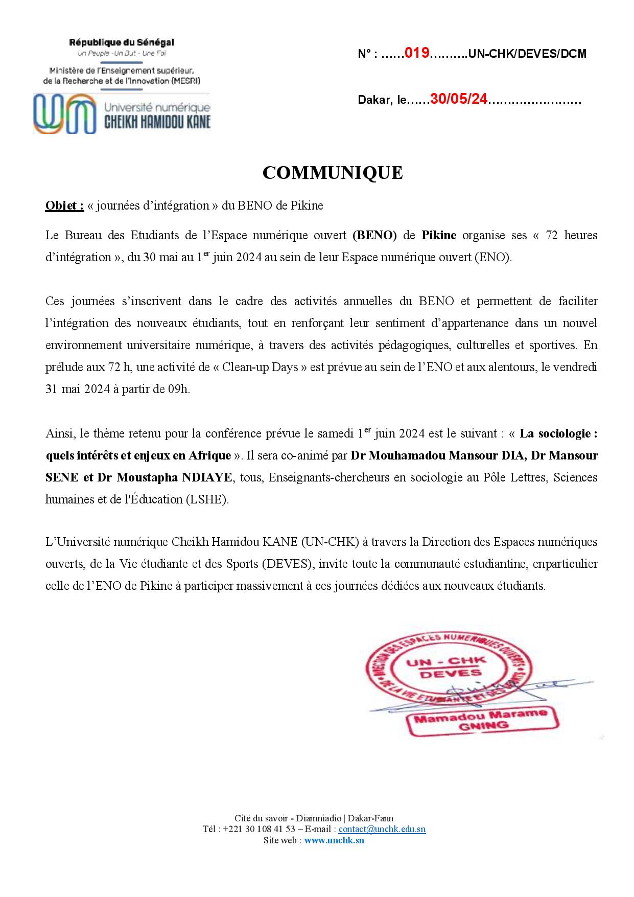 Accueil > communiqué > «journées d’intégration » du BENO de Pikine