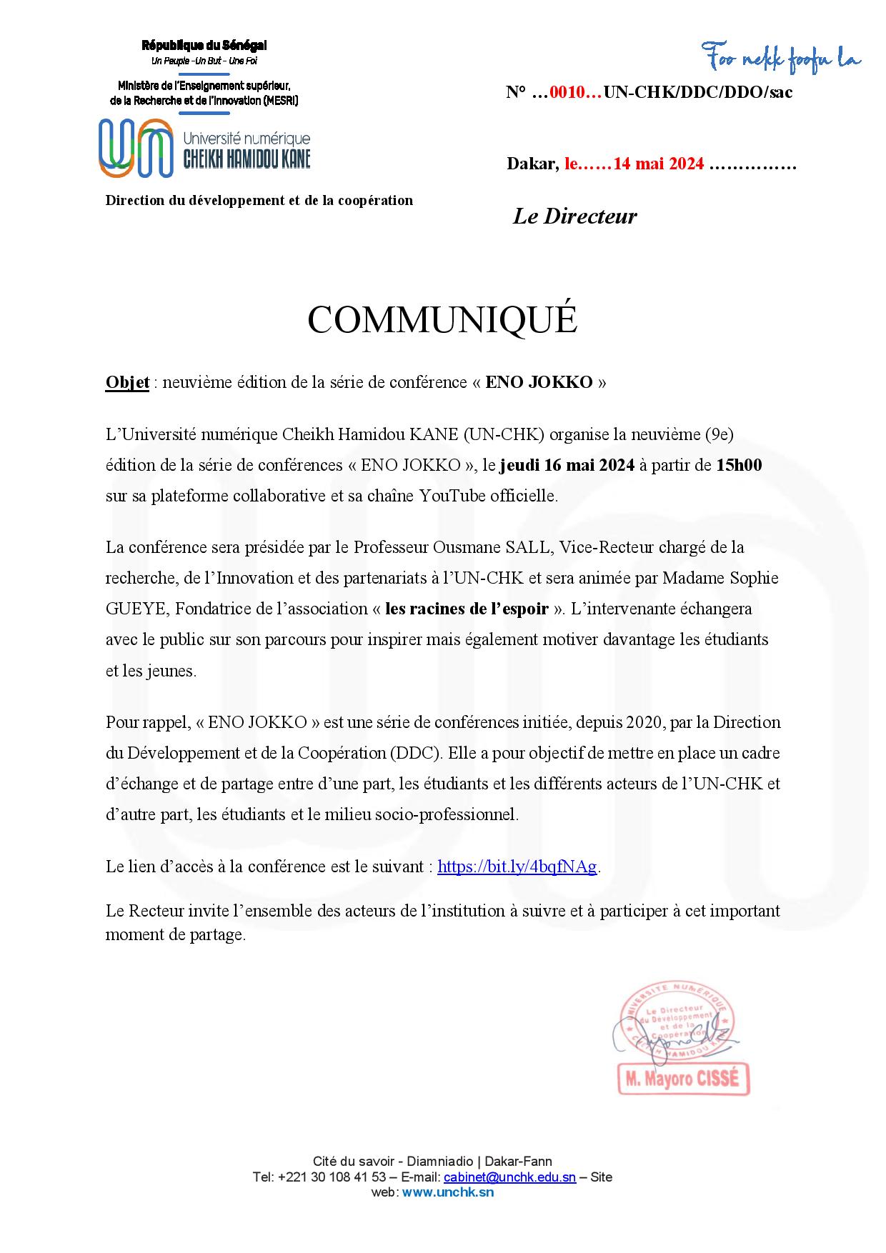 Accueil > communiqué > Neuvième édition de la série de conférence « ENO JOKKO »