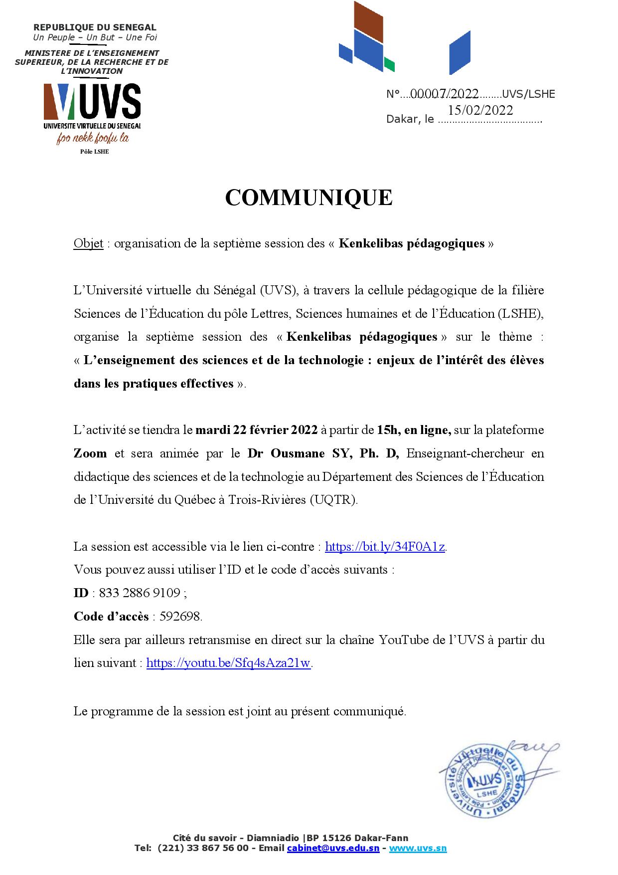 Accueil > communiqué > Organisation de la septième session des « Kenkelibas pédagogiques »