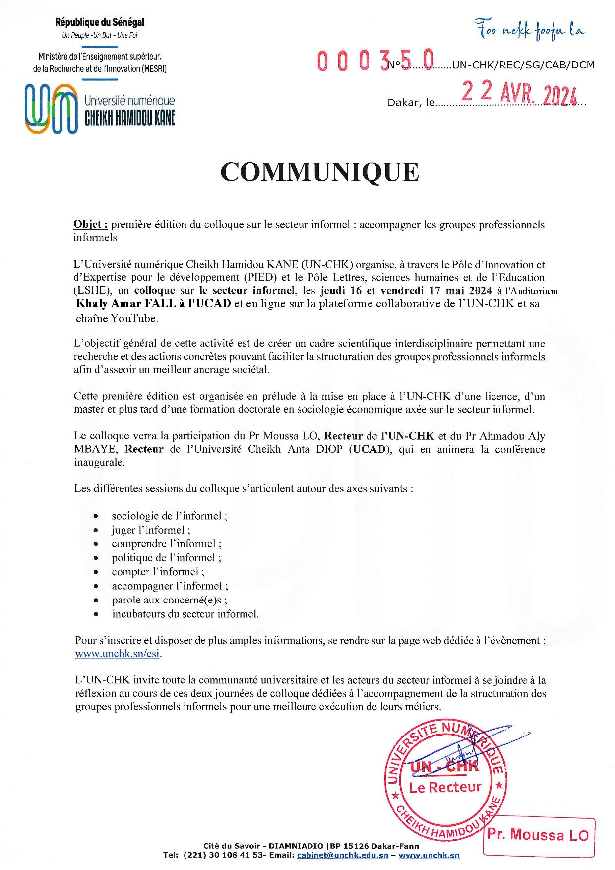 Accueil > communiqué > Première édition du colloque sur le secteur informel: accompagner les groupes professionnels informels
