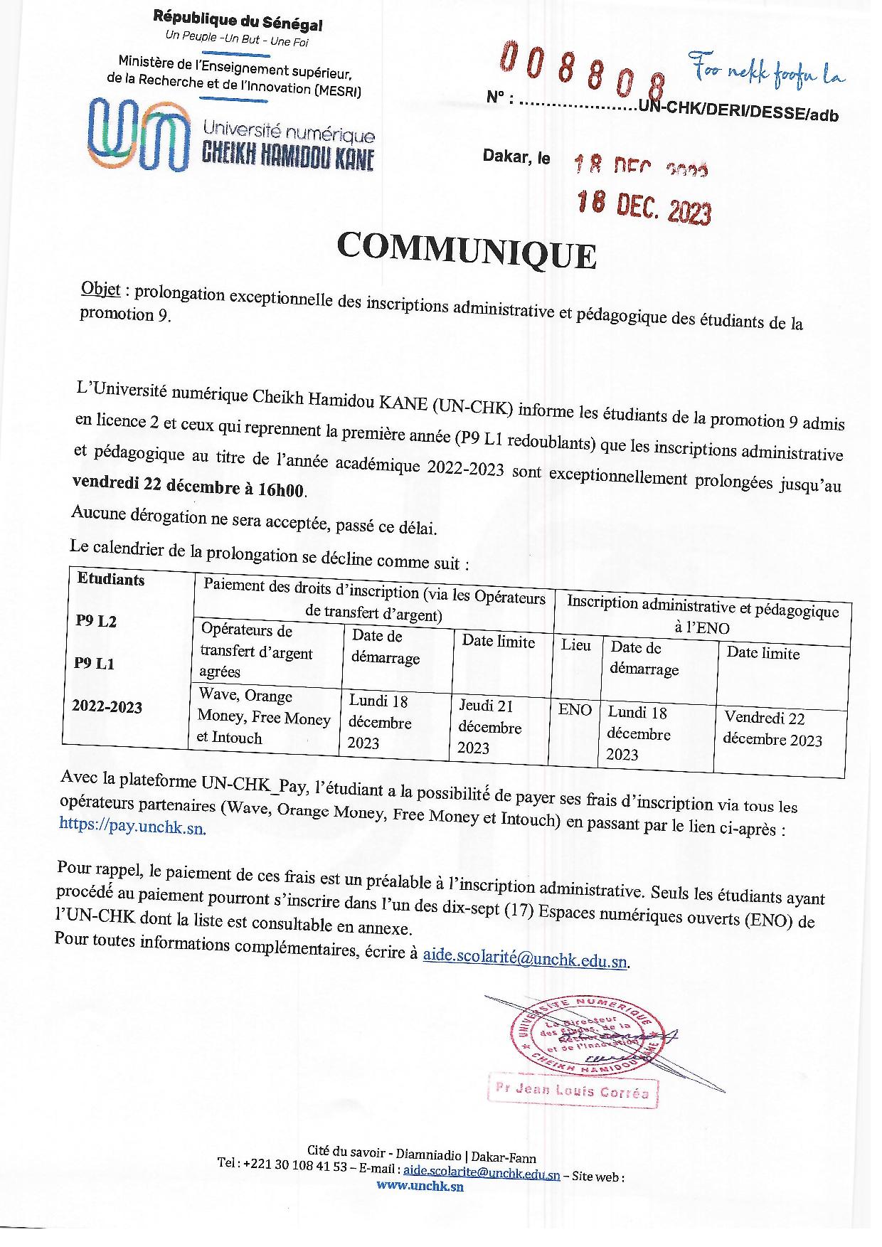 Accueil > communiqué > Prolongation exceptionnelle inscriptions pédagogique et administrative P9