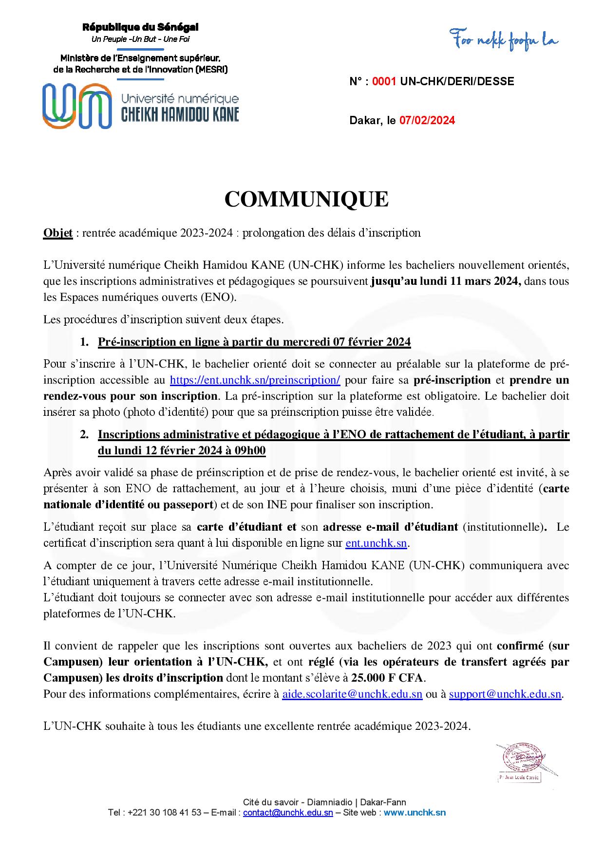 Accueil > communiqué > rentrée académique 2023-2024 : prolongation des délais d’inscription